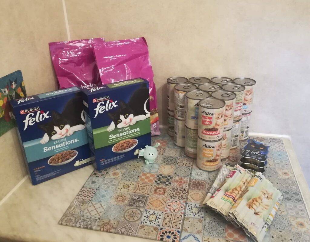 Wir freuen uns sehr über die Futter-und Sachspenden.