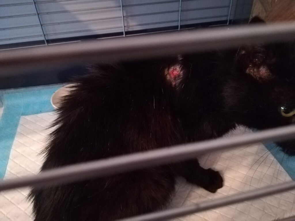Dieser kastrierte Kater wurde letzte Woche verletzt, abgemagert und mit unzähligen älteren Verletzung auf dem Campingplatz In den Stämmen aufgegriffen.