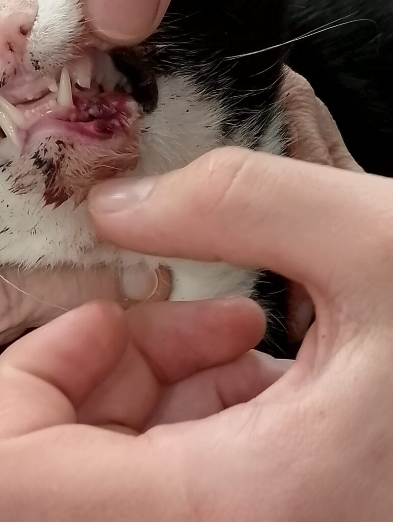 Seine Unterlippe wurde angenäht und ein loser Reißzahn entfernt.