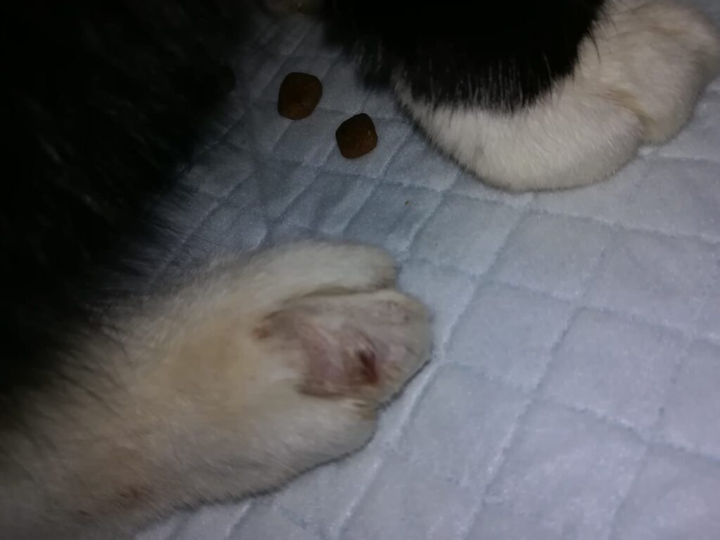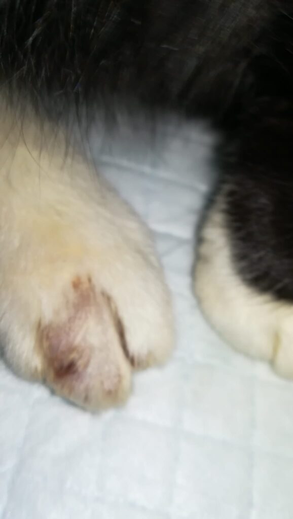 Carlo quält ein hochentzündeter Zeh an der rechten Hinterpfote. Dieser wird nicht mehr zu retten sein und wird in 14 Tagen amputiert.