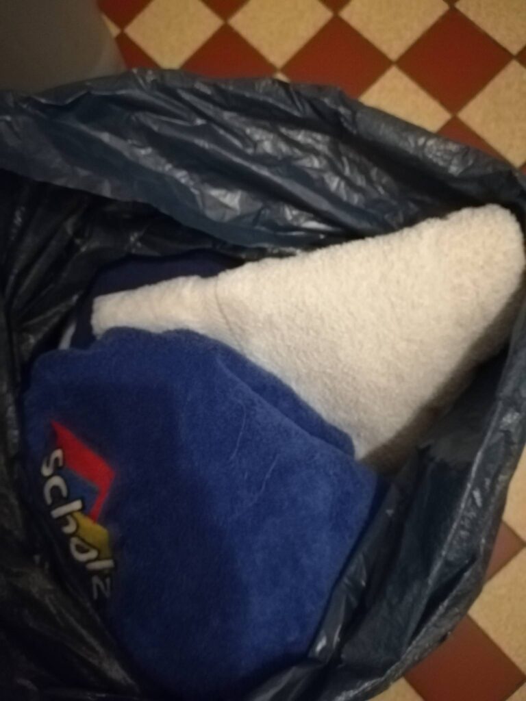 Eine Bekannte der Familie hat noch Handtücher oben drauf gelegt – schnurrigen Dank dafür❣️😽😘💖🎄🌟